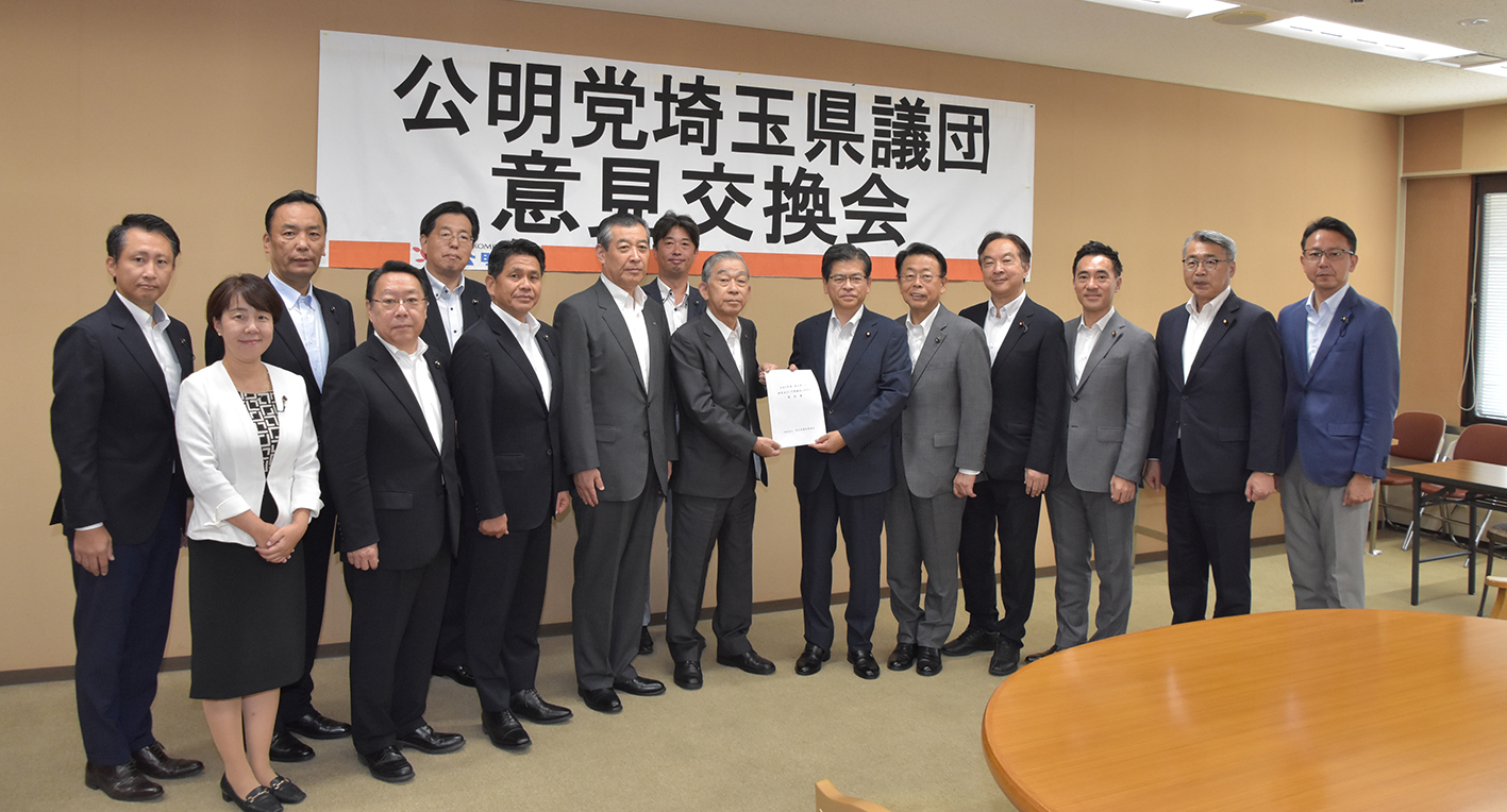 公明党の石井啓一幹事長は9月17日、党埼玉県議団(蒲生徳明団長)が県庁内で開催した県内各種団体との意見交換会に出席し、8団体から要望を受けた。西田実仁県代表(参院会長)、輿水恵一衆院議員、矢倉克夫、宮崎勝両参院議員が同席した。